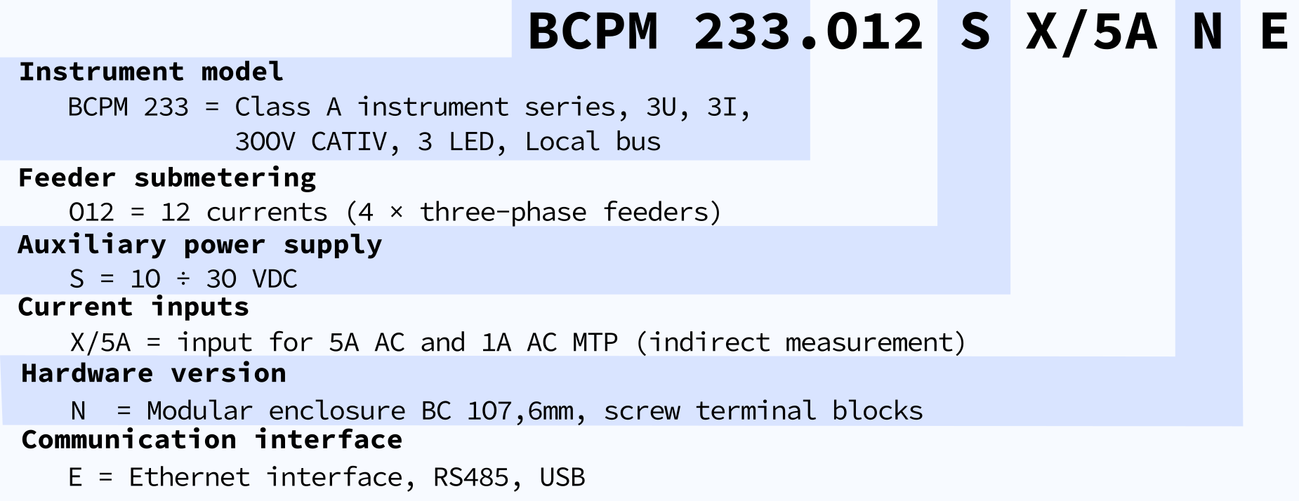 Wide range of communication interfaces predetermines use in most demanding applications. It measures and records all common electrical parameters such as frequency, line and phase voltages, currents, loads, active and reactive powers, true and displacement power factors, unbalances and up to 128 harmonics as well as the total harmonic distortion and not least the RCM. With optional SH firmware module BCPM 233 can also measure supra-harmonics in the range between 2 and 9 kHz.