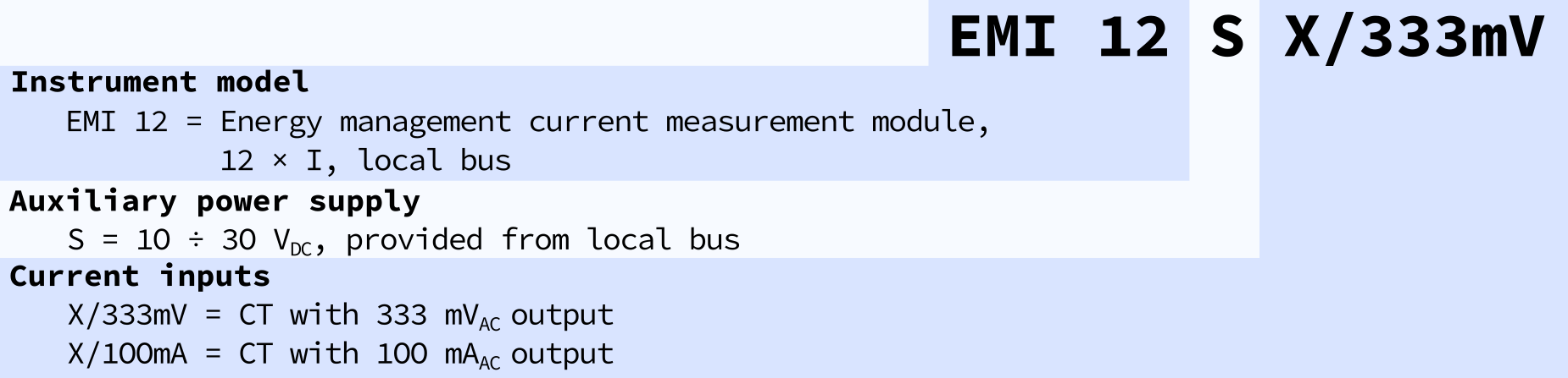 - Options exist to measure residual currents (EMI 12 RCM), DC currents (EMI 12 HALL) or split core CTS (EMI 12).