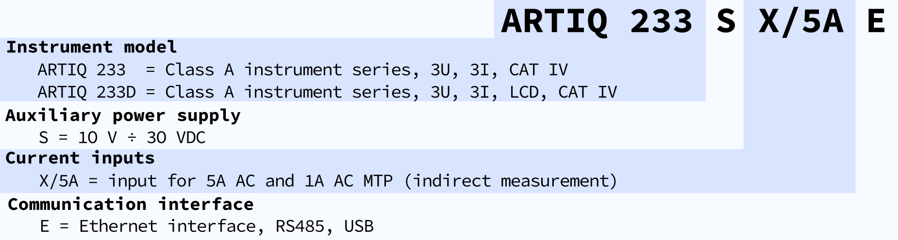 ARTIQ 233 is a class A power quality analyzer according to IEC 61000-4-30 ed3, certified by IEC 62586-1 & -2 and energy counter class 0.2S. It is constructed as a robust solution for harsh and challenging environments of a typical smart grid with measurement category CATIV/300V. All measured data are stored to large internal memory (512MB) for future processing. Evaluation of power quality is according EN 50160 ed3. Extreme accuracy, high sampling rate, measurement category CAT IV and wide range of communication interfaces predetermines use in most demanding applications. It measures and records all common electrical parameters such as frequency, line and phase voltages, currents, loads, active and reactive powers, true and displacement power factors, unbalances and up to 128 harmonics as well as the total harmonic distortion and not least the RCM. With optional SH firmware module ARTIQ 233 can also measure supra-harmonics in the range between 2 and 9 kHz.