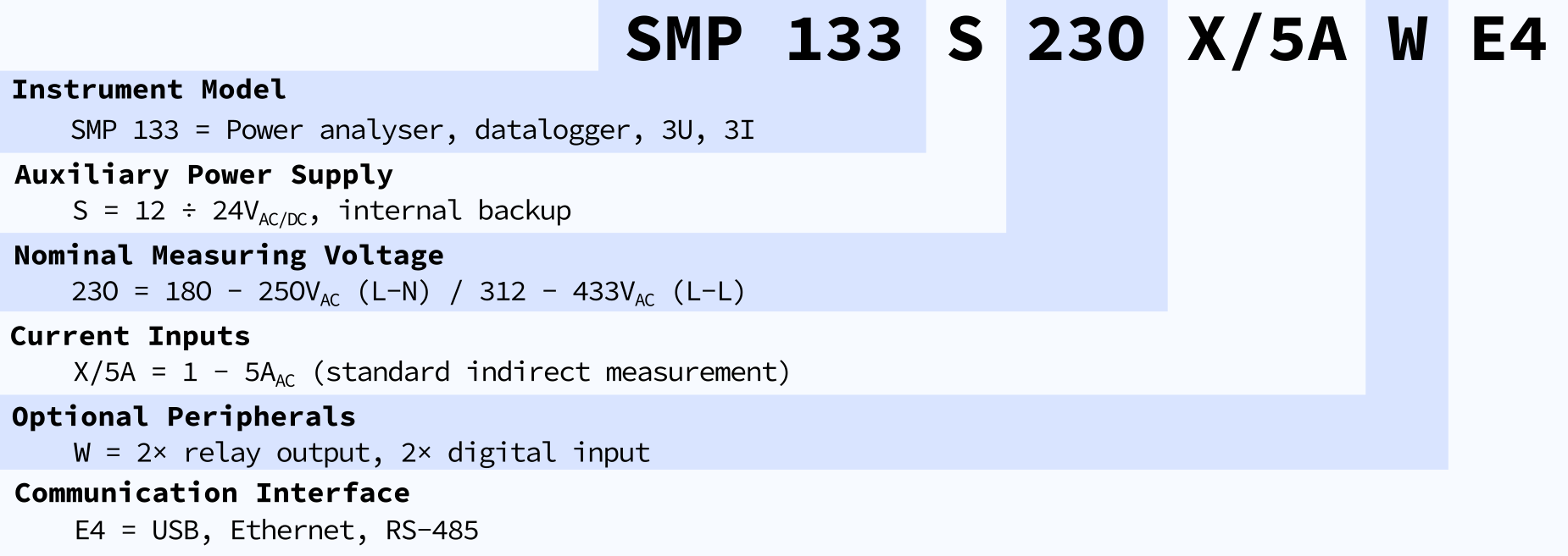 SMP 133 is a hardened version of SMY 133 power analyzer intended specially for use in smart grids, distribution network automation substations and other types of harsh environments. Measurement inputs are designed for CATIV/300V networks. The instrument is supplied from a safe low voltage (12-24V LVDC) power supply. A proper single- or three-phase power supply for substation use can be also supplied - see our PWR 1 and PWR3 product lines. It measures and records all common electrical parameters, active and reactive energies in quadrants and per phase, per tarif as well as totoal. It can also record transients, evaluate ripple control signals and interact with the substation control system through its IO ports.