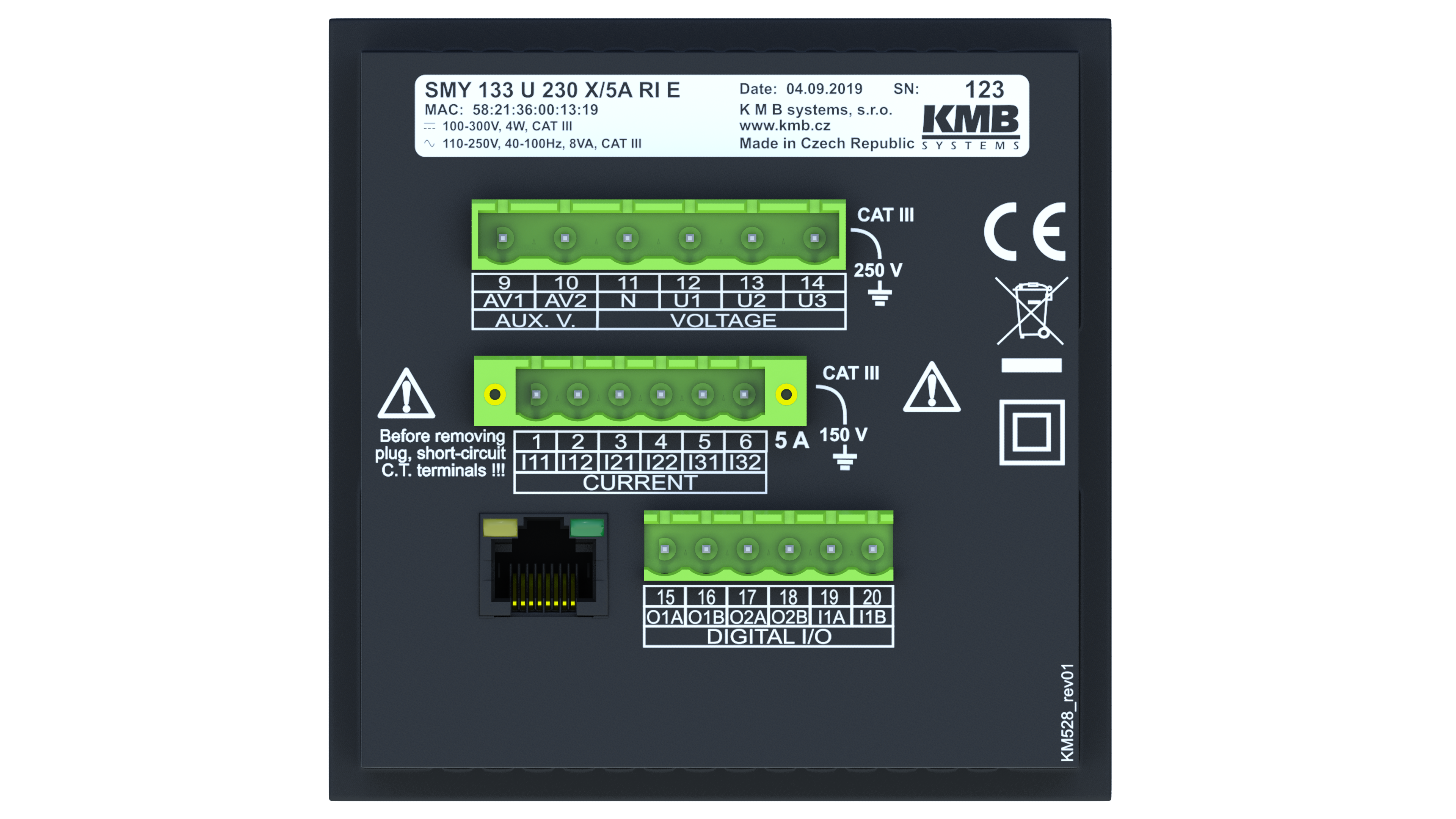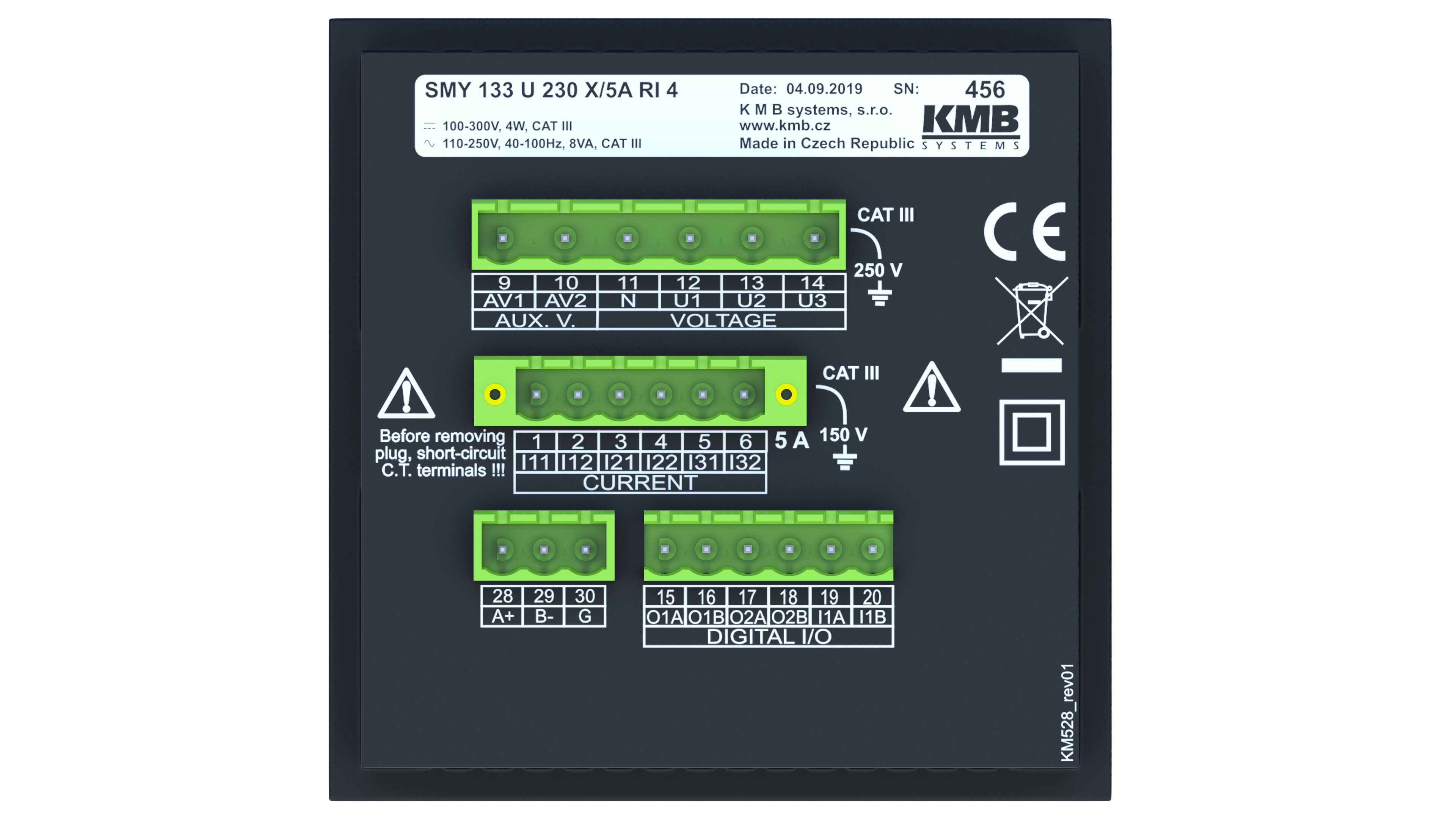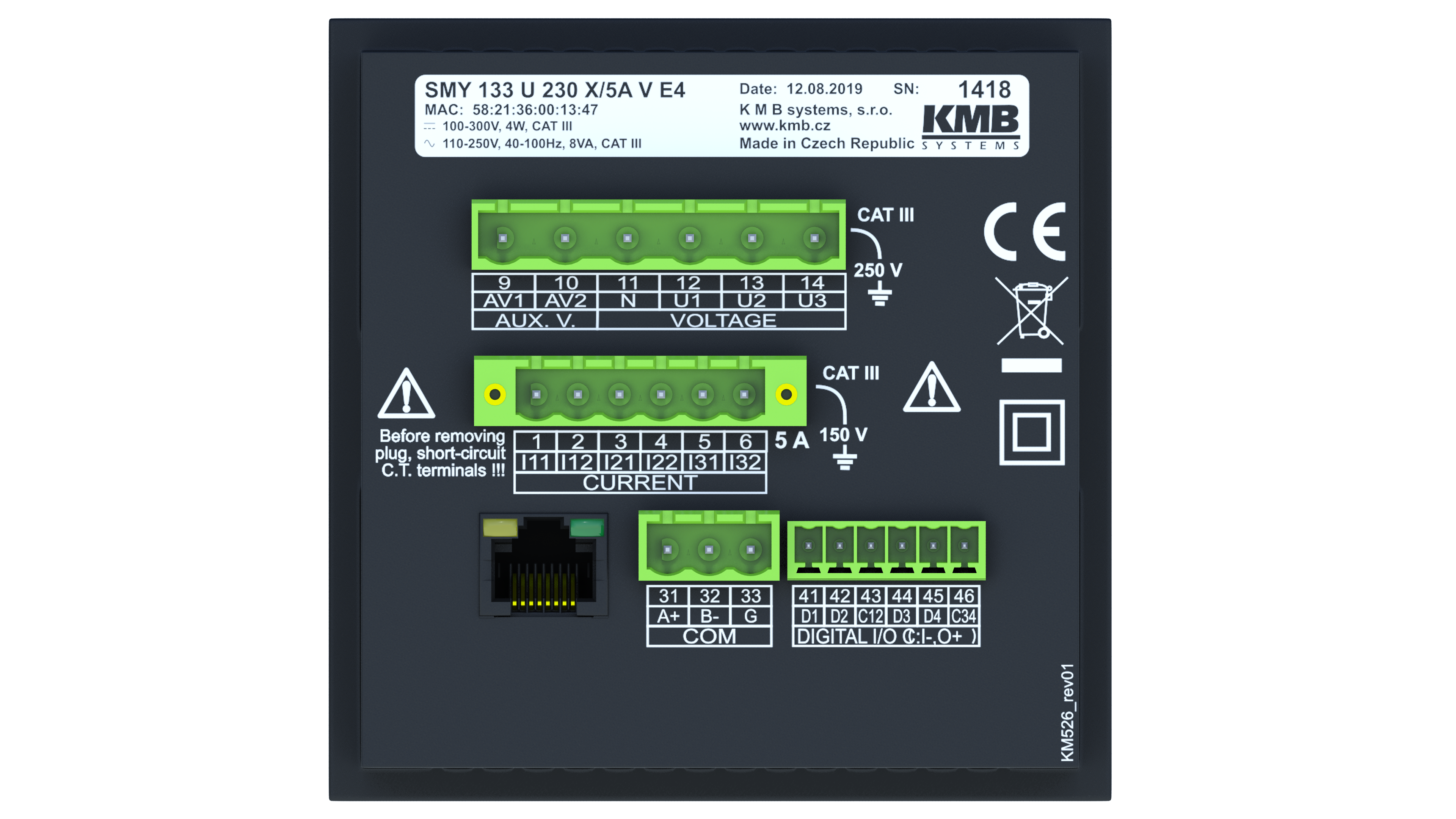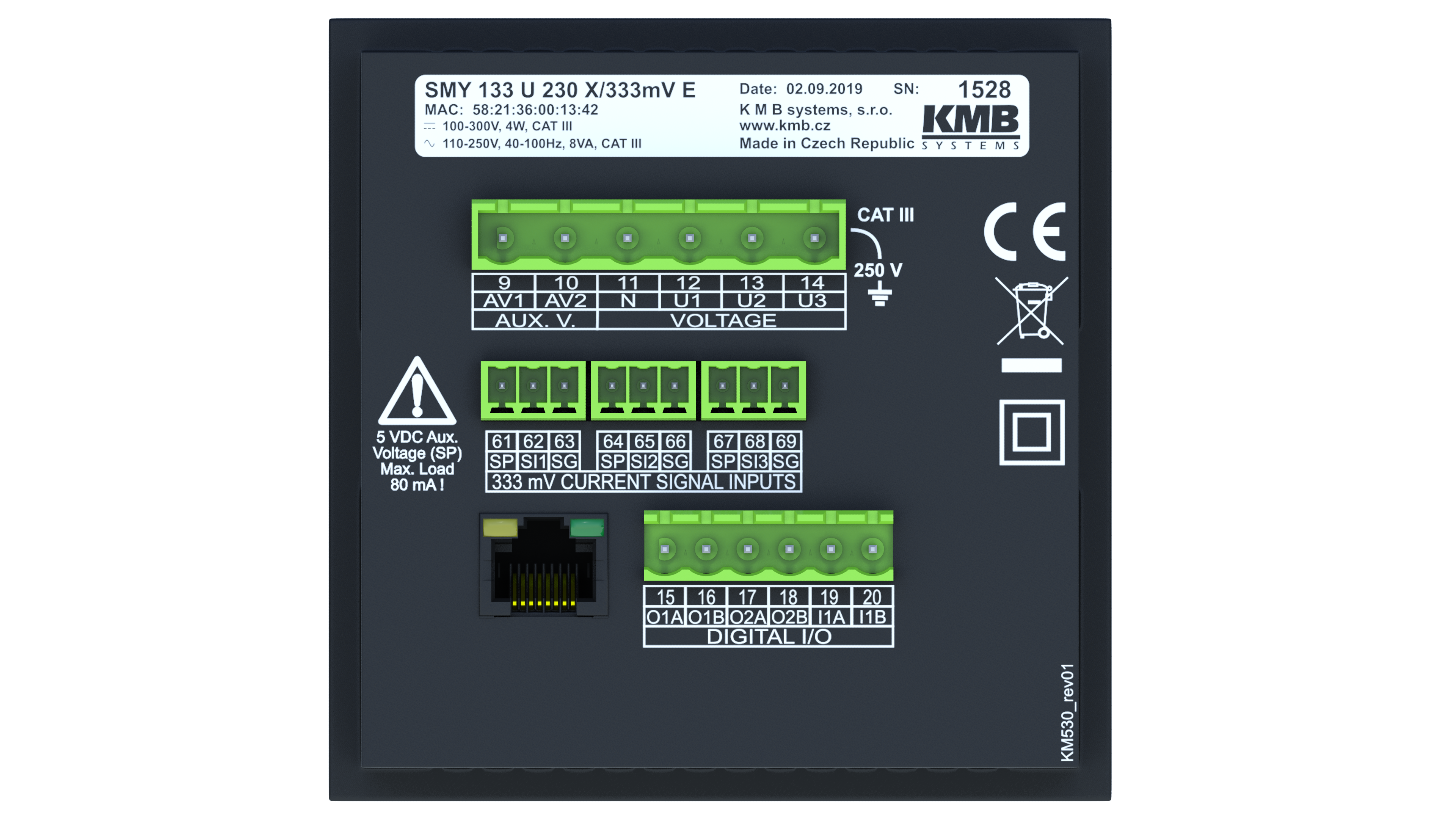 SMY 133 is a power analyzer with half a gigabyte internal memory and large bright graphical display. Instrument is designed for sub-metering and control in single- and three-phase low, medium and high voltage networks. It monitors and records all common parameters: frequency, line and phase voltages, currents, unbalances, active and reactive powers, power factors and up to 50 harmonics as well as the total harmonic distortion.
