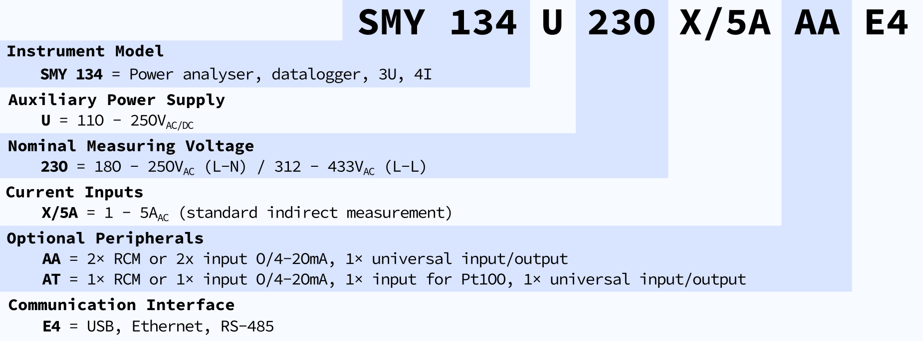 SMY 134 is an extended version of SMY 133 power analyzer. The major difference is an additional current input to measure neutral wire and up to two special residual current measuring inputs. SMY 134 is designed for sub-metering and control in all types of networks especially with residual current monitoring (RCM) requirements. It measures and records all common parameters: frequency, line and phase voltages, currents, loads, active and reactive powers, true and displacement power factors, unbalances and up to 50 harmonics as well as the total harmonic distortion and not least the RCM.