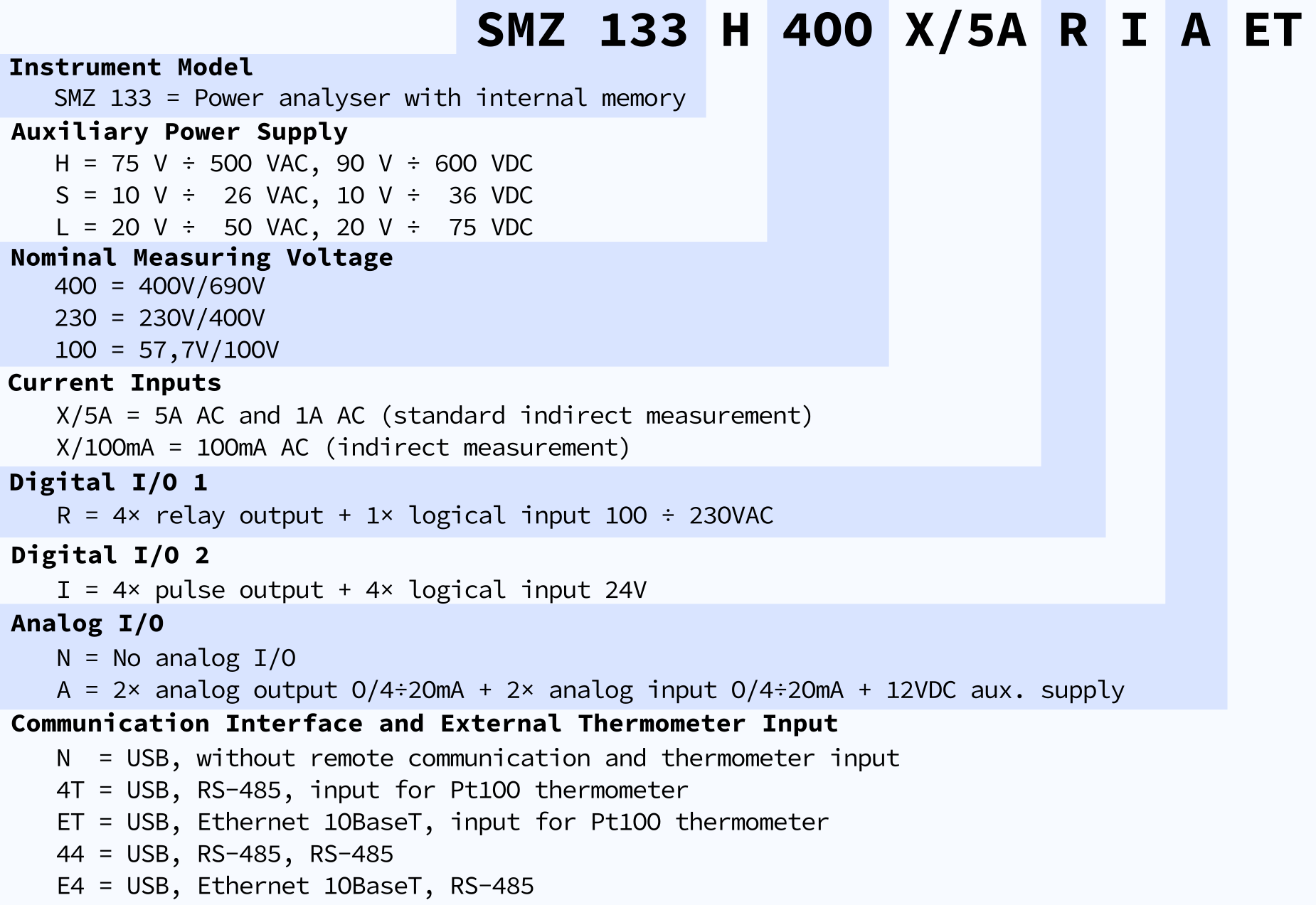 SMZ 133 is an energy meter and precise analyzer intended for use in industrial automation, smart grids and other demanding projects. It can work as a standalone unit as well as a control and display unit for other simpler slaves (see Modbus master firmware module, MM). Measurement inputs are designed for industrial environments. Four voltage and four current channels are available to cover all connection scenarios. It measures and records all common parameters: frequency, line and phase voltages, currents, loads, active and reactive powers, true and displacement power factors, unbalances and up to 50 harmonics as well as the total harmonic distortion.
